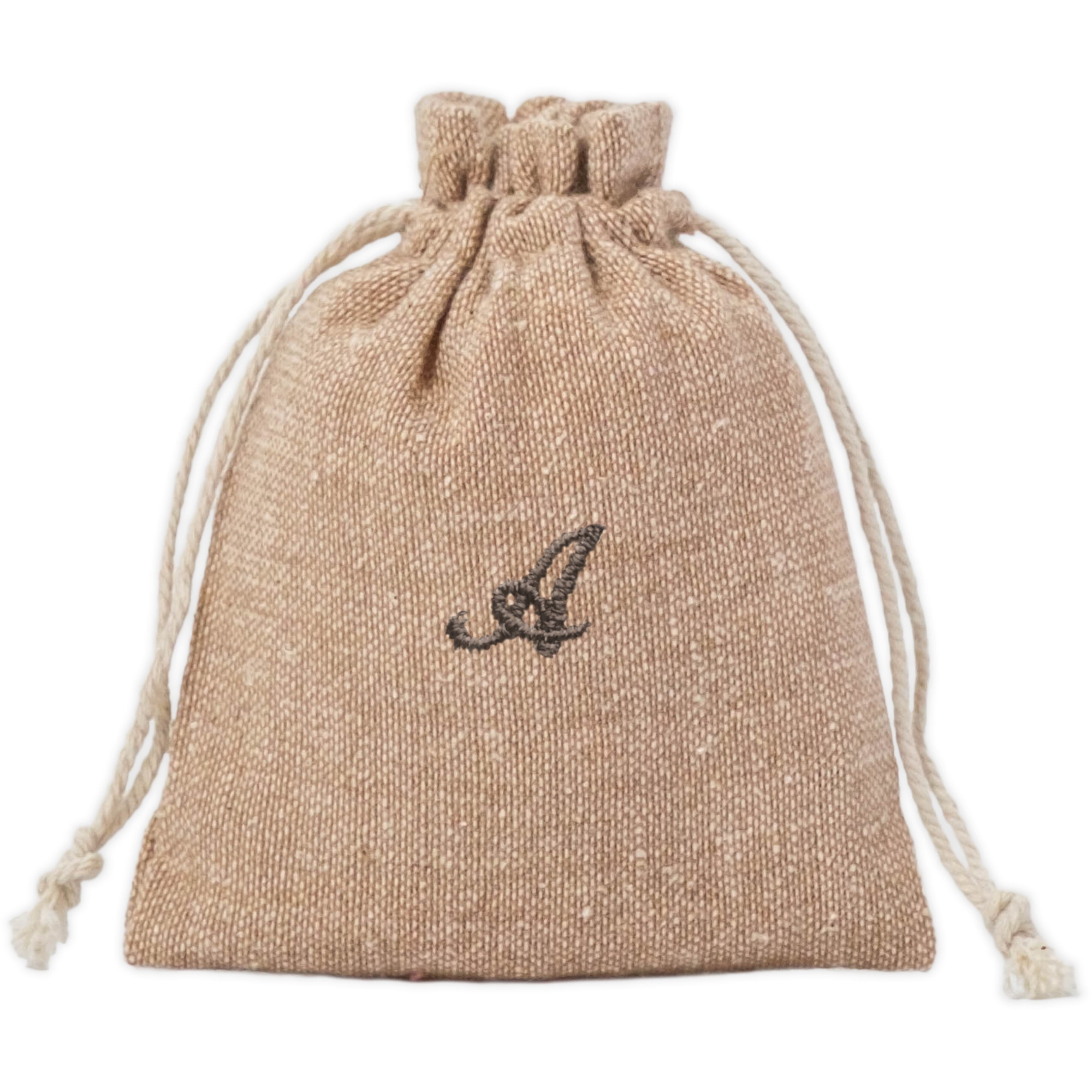 インド綿の巾着袋は、手作りの温かみを感じさせる素材が魅力的なアイテムです。