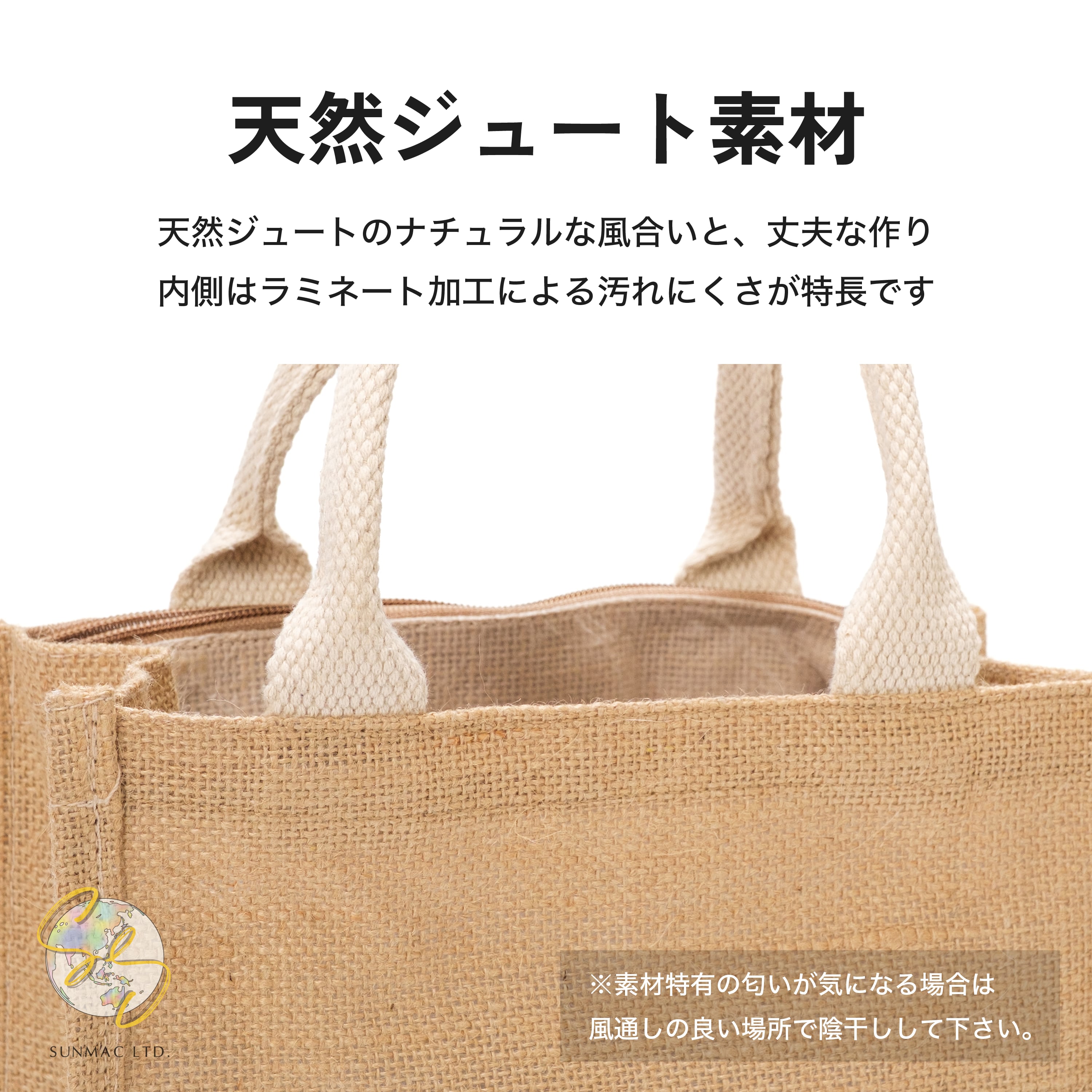 100%ジュート素材を使用。丈夫で繰り返し使えて、エコバッグとしても活躍します♻️