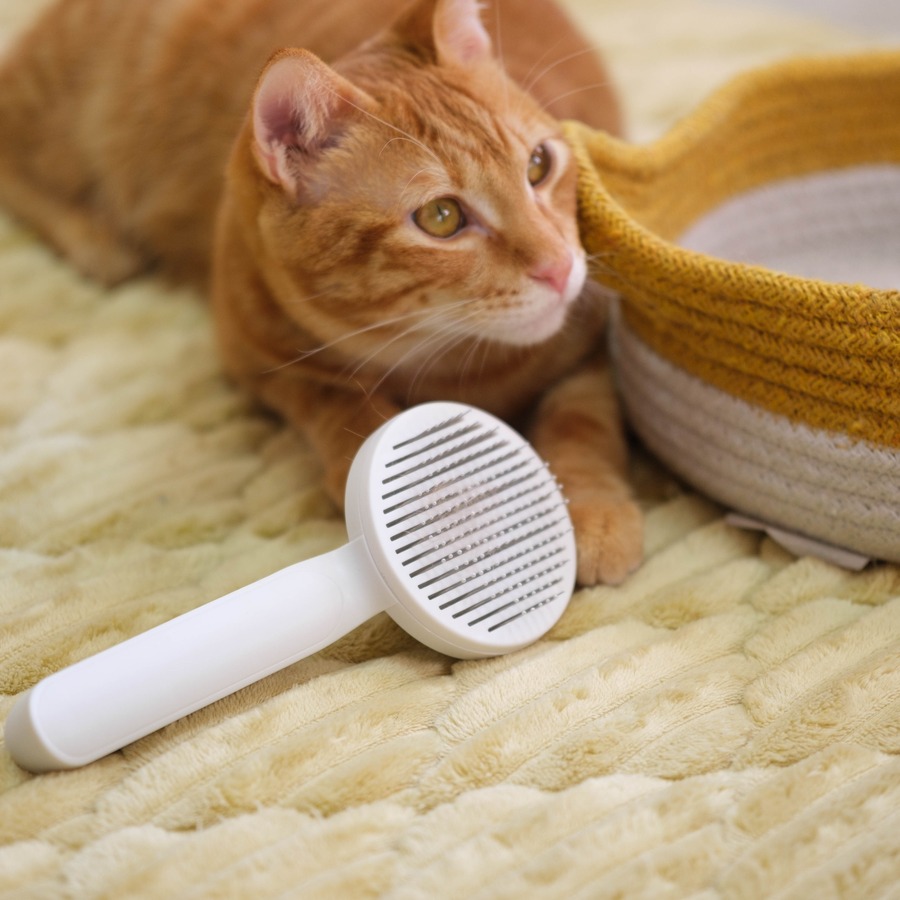 ペットに優しい猫型ワンプッシュブラシで簡単毛取り